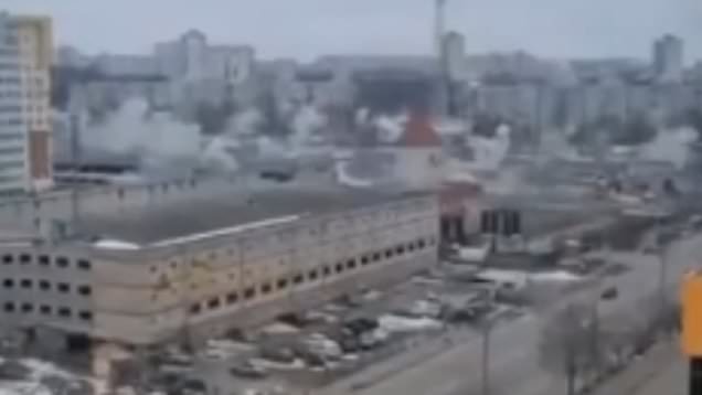 Terrifying video footage showed the aftermath where rockets fired by Russian forces on Monday covered the area with fear while causing intense destruction of a nearby shopping center too.
