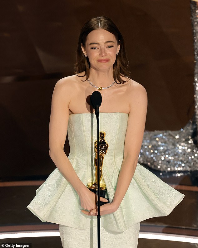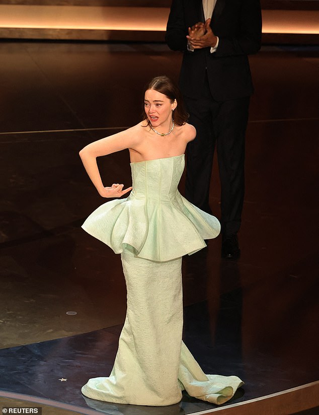The star was seen hitting the Oscars stage to get the award for ‘Best Actress’ for that evening but it was clear that she was not happy.