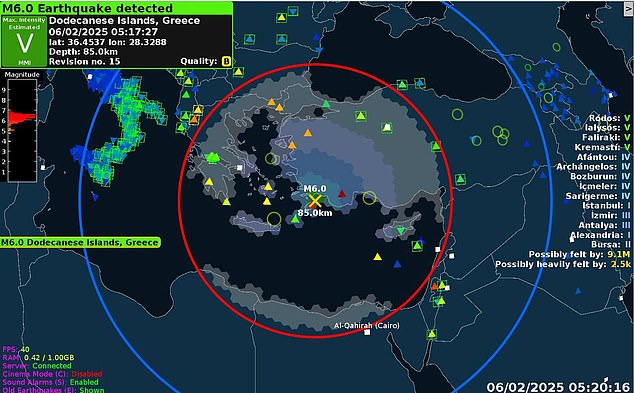 The aftermath was so powerful that the shockwaves were felt in Greece, and people were awoken from their sleep on the island of Rhodes, and holidaymakers at some hotels were also informed to evacuate immediately.