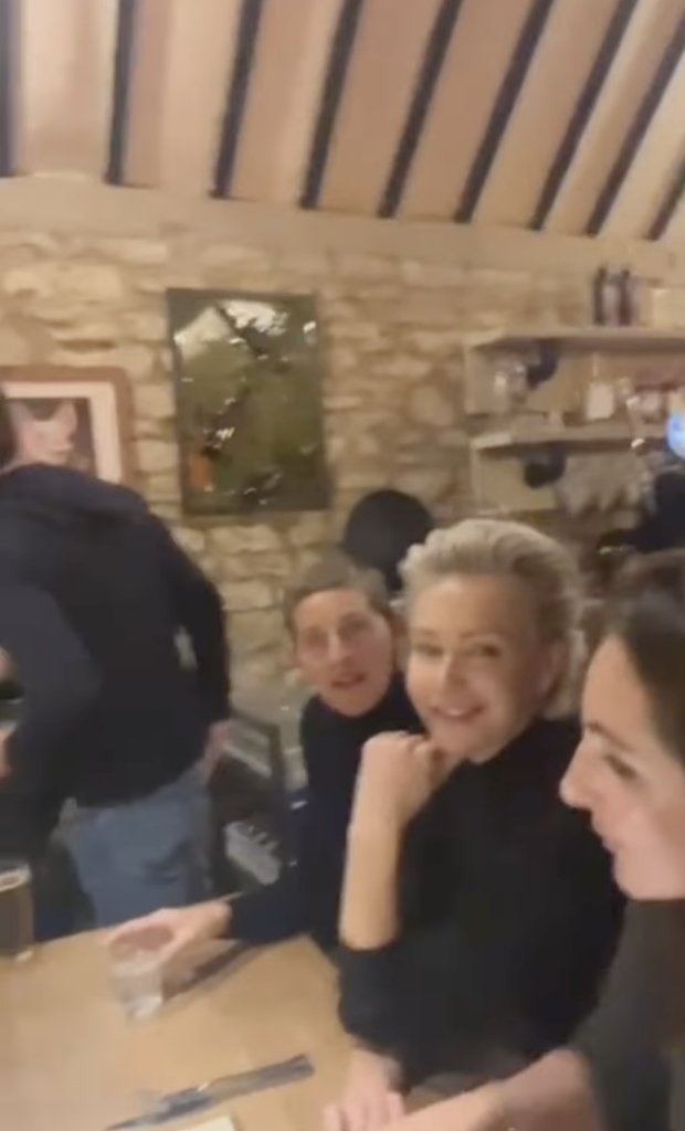 Celeb talk show host Ellen DeGeneres was recently spotted in the United Kingdom at a pub with her partner Portia and a few close friends.