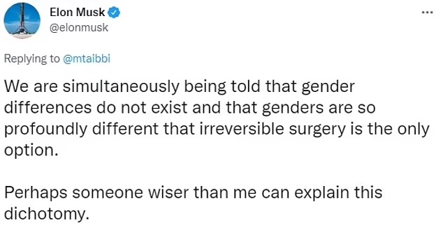 Among other controversial statements, Musk suggested he supports Florida Gov. Ron DeSantis who introduced the “Don’t Say Gay” bill to block gender identity from being discussed in schools for young children.