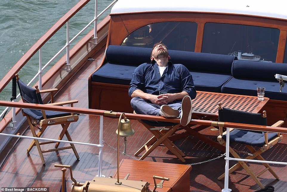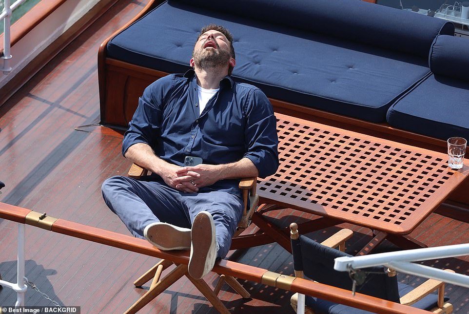 Ben was seen snoozing on a honeymoon cruise that the couple had with their kids by their side.