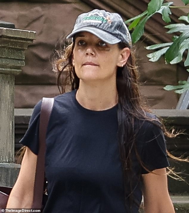 Actress Katie Holmes was seen sporting a bruised face and eye while stepping out in New York City on Monday.