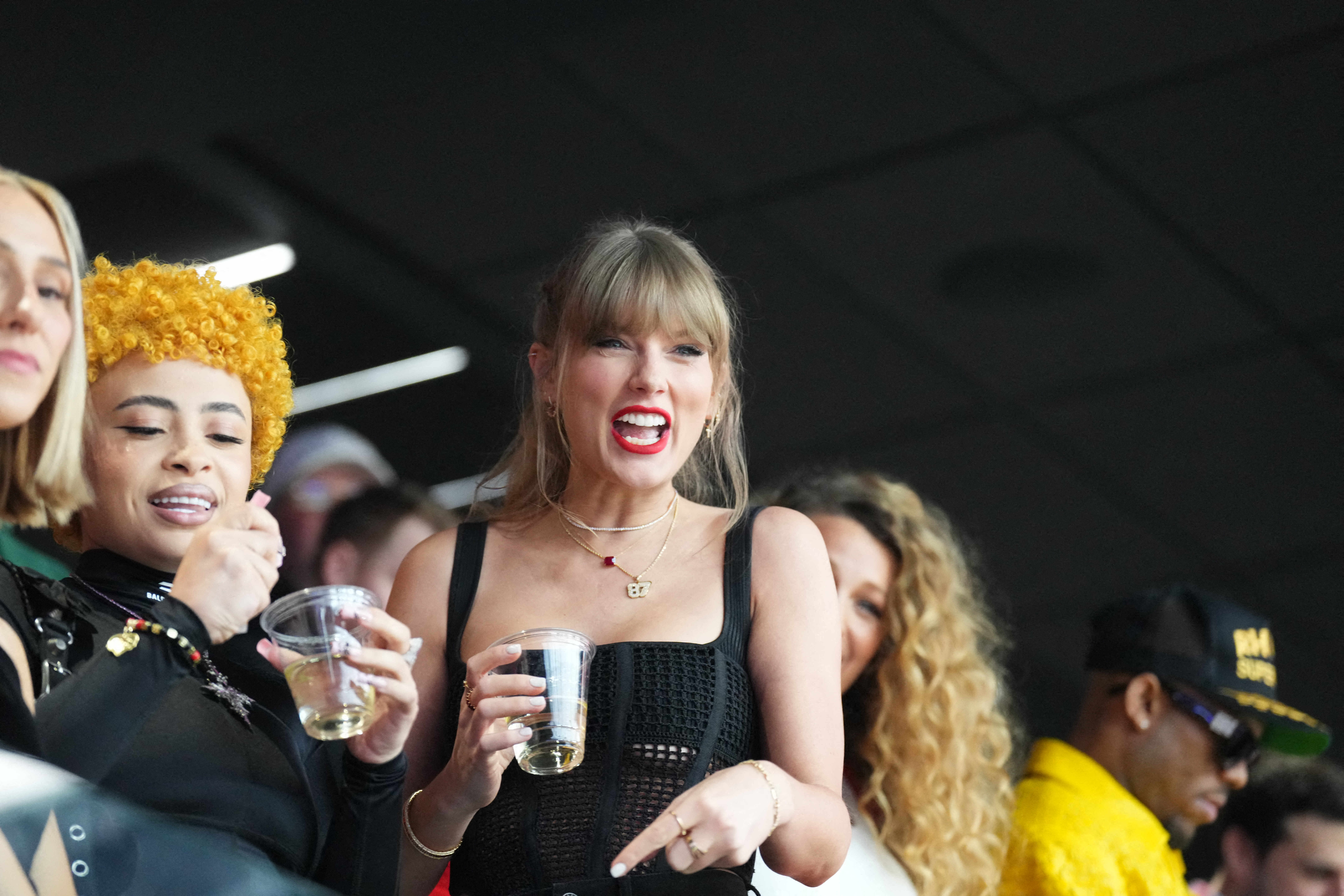 Singer Taylor Swift comes face to face with a booing stadium while chugging beer at yesterday’s grand Superbowl event.