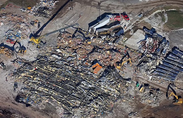 Hours after the first siren warning, the workers who remained at the factory returned to their posts believing that the danger was over. Moments later, the factory was hit hard by the twister, leaving at least eight people dead.
