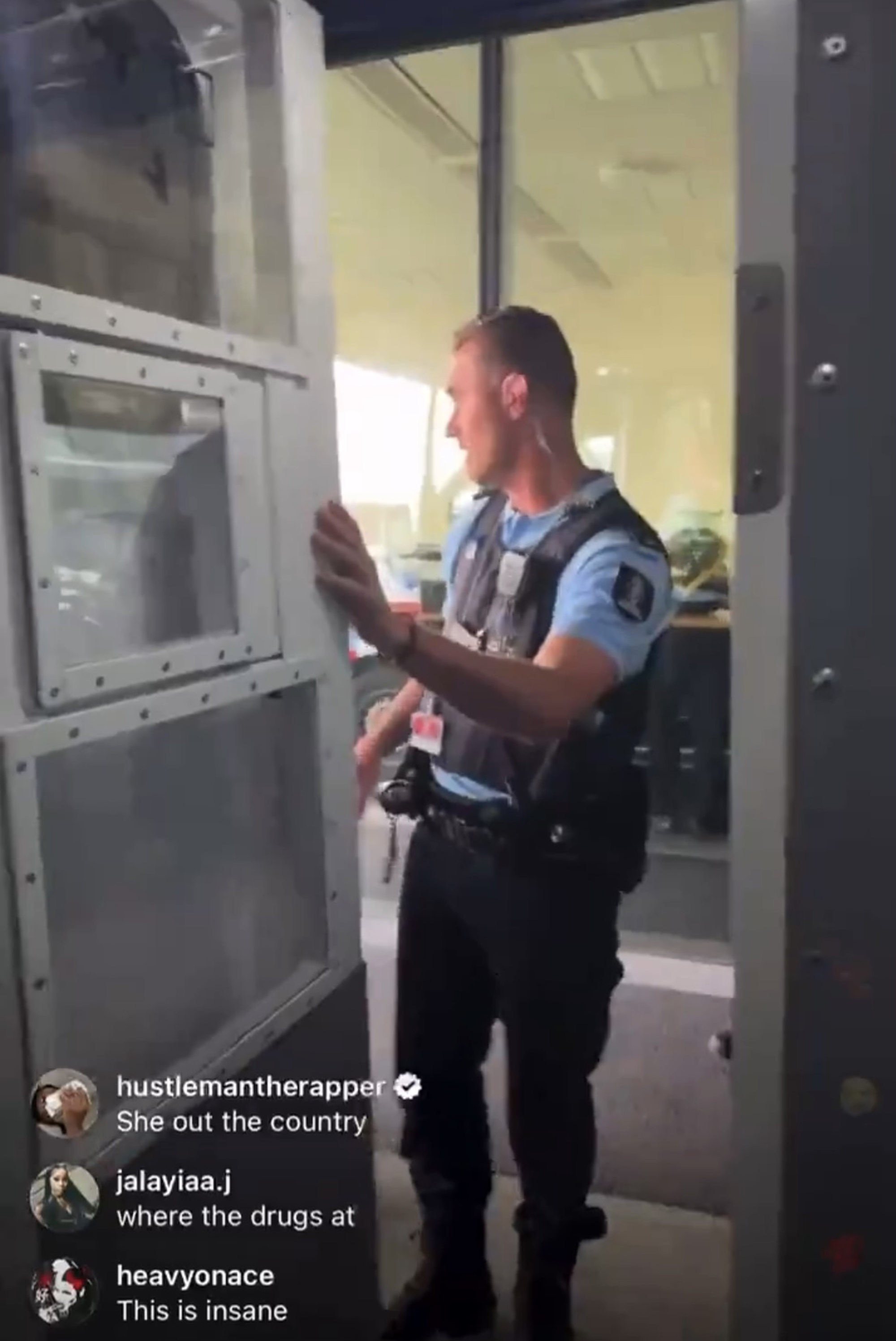 The rapper can be heard and seen refusing to follow the orders given to her as she requests a lawyer and the address of the station.