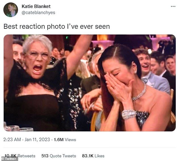 There was an entire debate on Twitter that discussed this sweet reaction and how Curtis was undoubtedly the cutest fan of Michelle Yeoh and the biggest supporter that particular evening.