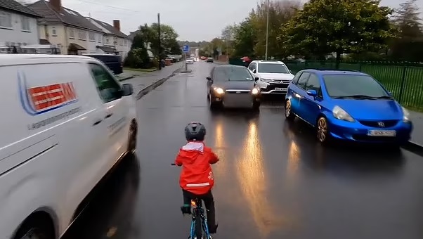 The clip has since sparked a divisive debate on social media where some viewers slammed the father for allowing his child to ride a bike clumsily on a public road while others defended him saying cyclists have just as much right to be on the road as drivers.