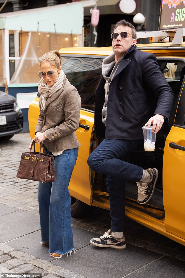 Actor Ben Affleck was pictured putting up a loved-up display for his wife Jennifer Lopez in New York recently.