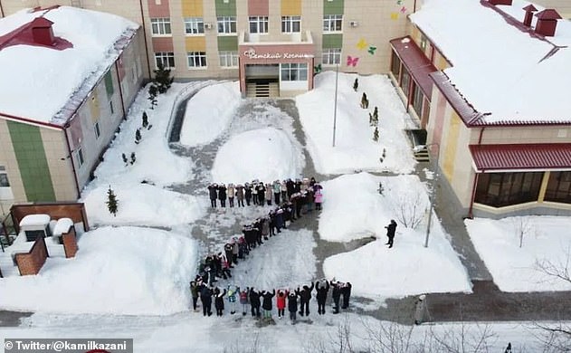 The young Russian students could be seen chanting and saluting in unity as they all donned the classic Z war symbol that could be seen printed across Russian tanks, aircraft, and other armored vehicles.