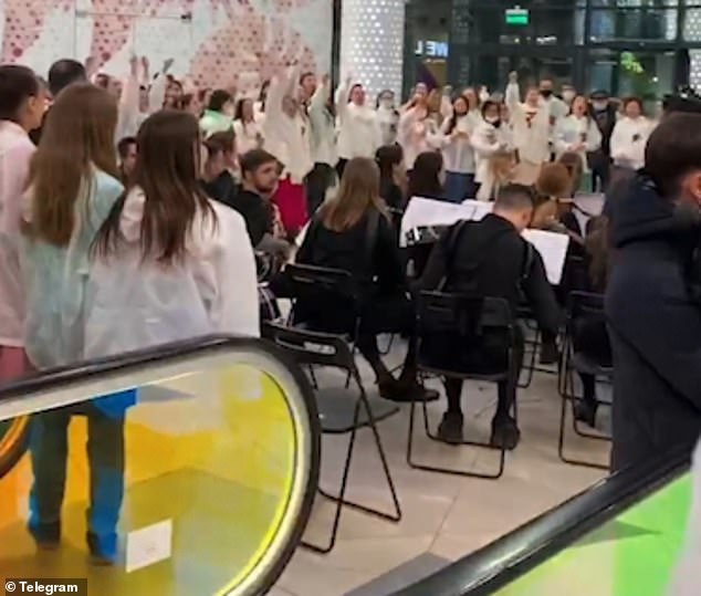 In the same way, they could be seen chanting ‘Forward Russia’ and ‘Russia for Peace’ while performing at a shopping mall.