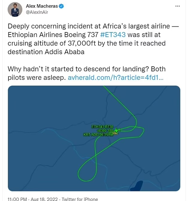 “Deeply concerning incident at Africa’s largest airline — Ethiopian Airlines Boeing 737 #ET343 was still at cruising altitude of 37,000ft by the time it reached destination Addis Ababa,” aviation expert Alex Macheras shared on Twitter.