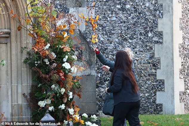 Images from outside the church showed a giant wreath of flowers being carried in while the outside was also adorned with flowers as many prepared to say their final goodbyes to the star.