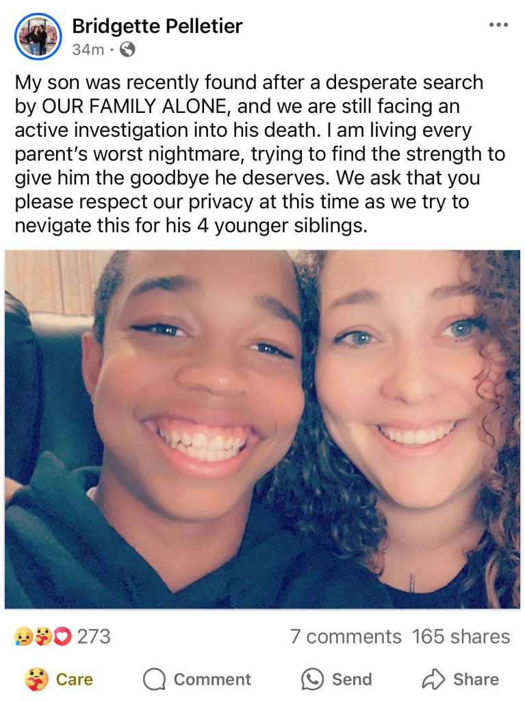 The mother says her son’s remains were located when a desperate search was carried out by the family alone. They are now still facing an active investigation into the death, it was revealed by the heartbroken mother through Facebook. ‘I am living every parent’s worst nightmare, trying to gather the strength to give him the final farewell that he deserves’- she cried.