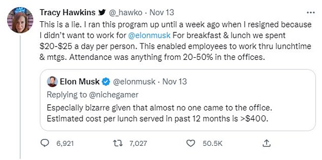 He similarly set out estimates that went on to speak about how much meals were costing the organization a staggering figure of $13 million every year. But it was rather embarrassing for Musk to see one employee who reportedly quit the firm after he took over mention that it was a lie.
