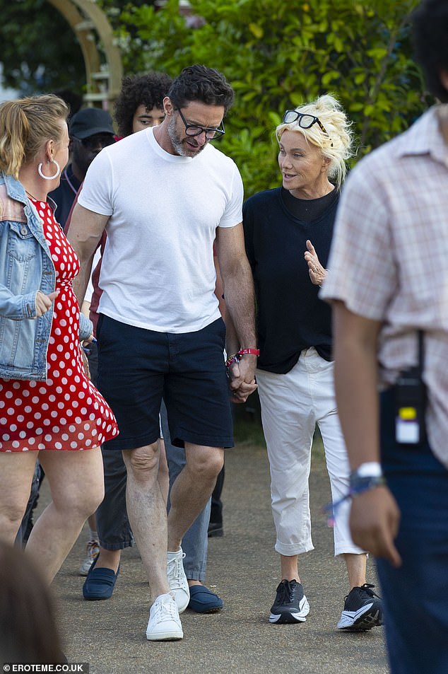 Jackman paired his navy shorts with a white colored shirt and some frames while his wife chose to flaunt her frame in a dark shirt and light-colored trousers.