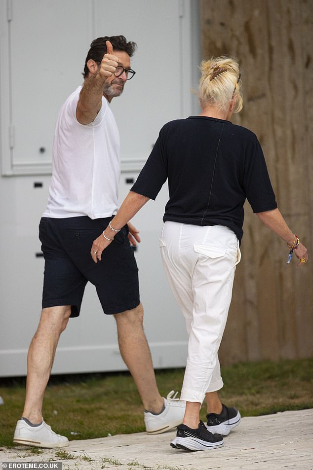 At all times, the couple acknowledged the press and those surrounding them with waves and a thumbs-up from Hugh too.