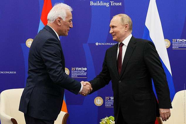 Vahagn Khachaturyan, who is a major ally of warmonger Putin, was seen bowing his head in respect to the Queen. But at that moment, his close aide began to snap plenty of pictures using his mobile phone.