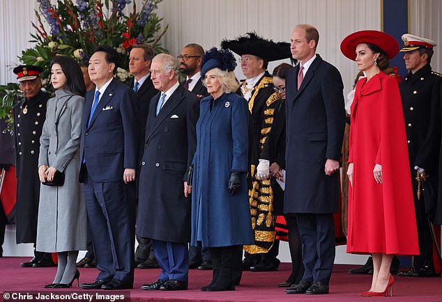 The Prince and Princess of Wales were seen accompanying the foreign guests to a guard of honor ceremony amid a royal procession. Again, Kate stole the show with her elegance and radiant beauty and many were sure that the color red was hers to own because she appeared gorgeous.