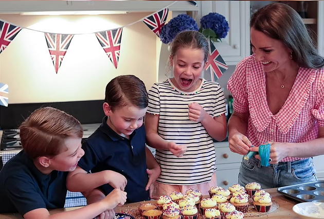 Prince George, Princess Charlotte, and Prince Louis joined their mom Kate Middleton in baking cakes for a Cardiff street party.
