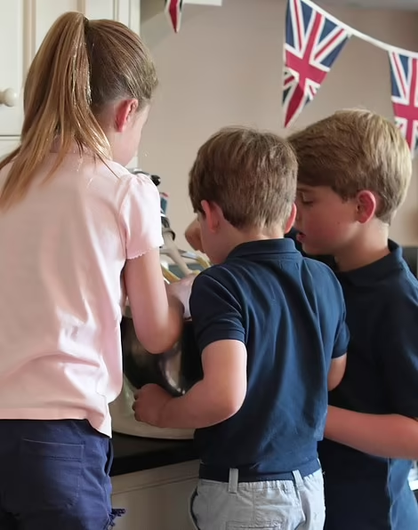 In the pictures, the Cambridge children can be seen preparing the ingredients and mixing them together before decorating the cupcakes with their mother.