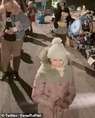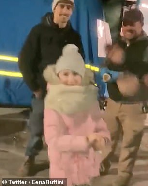 Despite coming from a negative and horrifying scene of events in Ukraine, the young girl appeared to be in a good mood as loud chants of ‘Hip Hip Hooray!’ filled the air, moments after the birthday singing stopped.