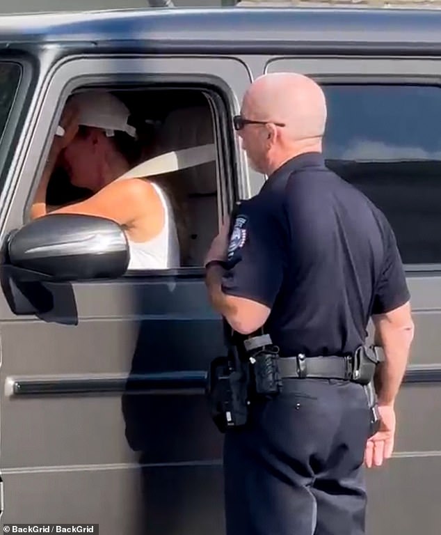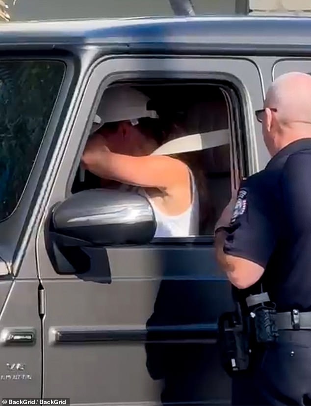 The model was accompanied by her latest boyfriend who tried to support the star as she seemed to be having an emotional breakdown after the officer tried to speak to her.