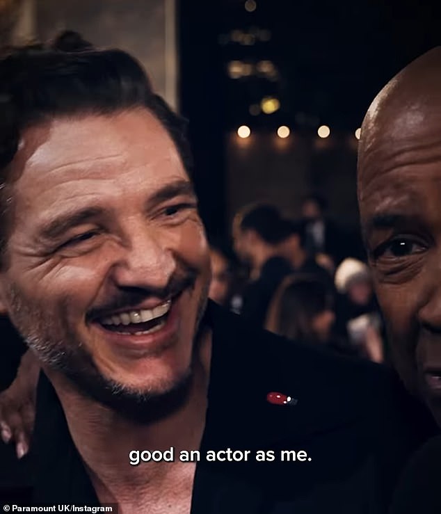 Denzel is heard stating that Pedro is not as great an actor as him and that did take some by surprise. Then he began to poke fun at Pedro’s in-demand star status.