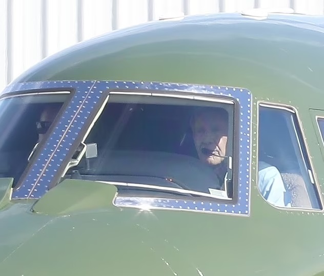 Before exiting the aircraft, Ford was pictured steering the plane from the cockpit and receiving orders from the air control via a headset.