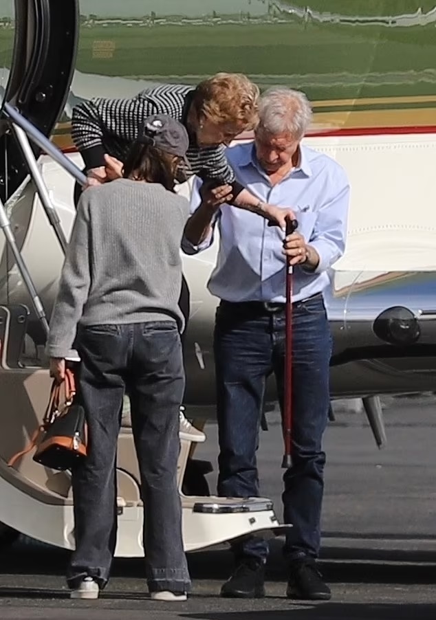 Harrison Ford was pictured flying his private jet to pick up his mother-in-law before attending his wife’s birthday party.