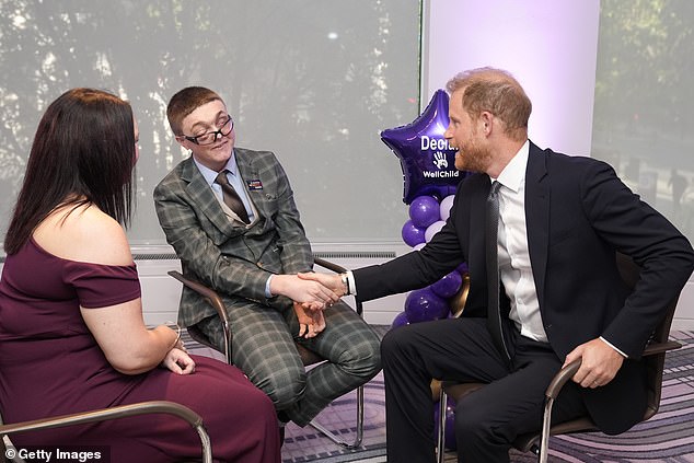 During a recent reception with plenty of award winners and ahead of the presentations, Harry started to joke around and laughed with the seriously ill youngsters and chatted to Declan Bitmead. He’s the boy from Surrey who won the inspiring young person award.