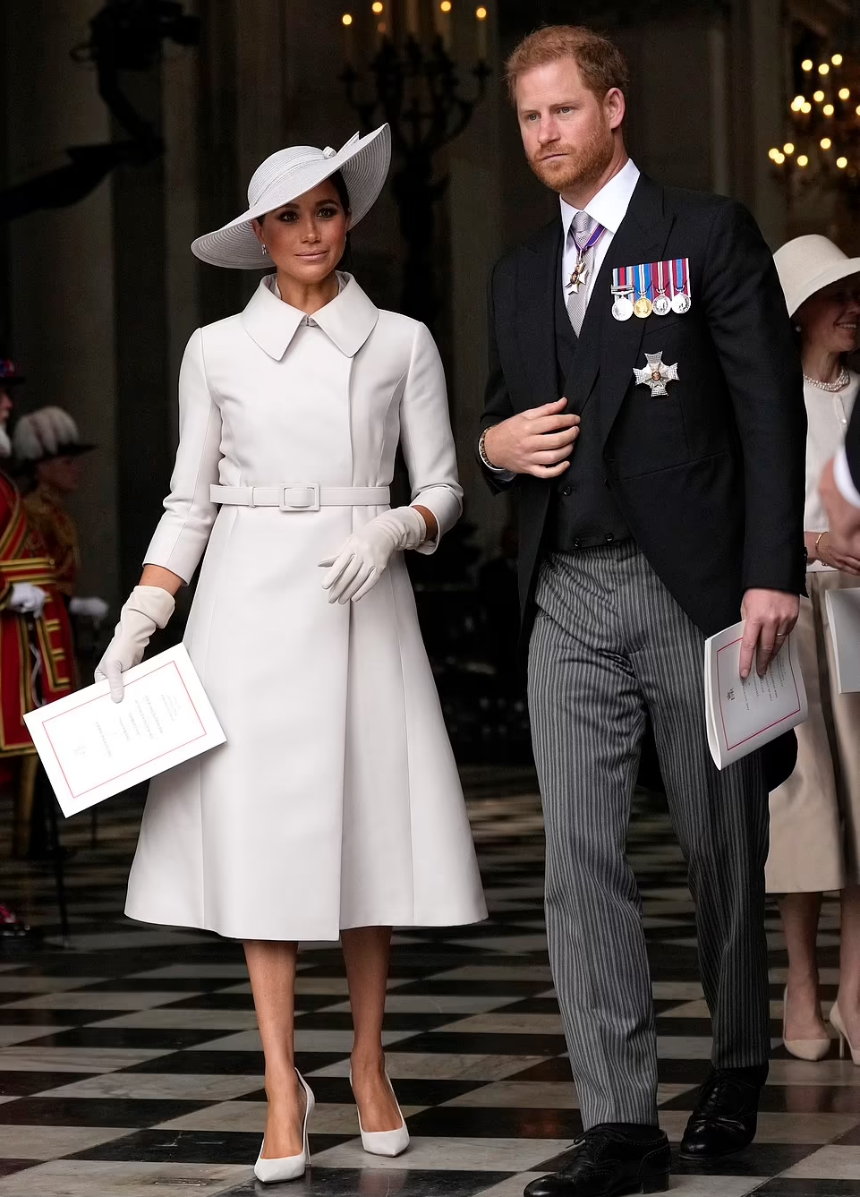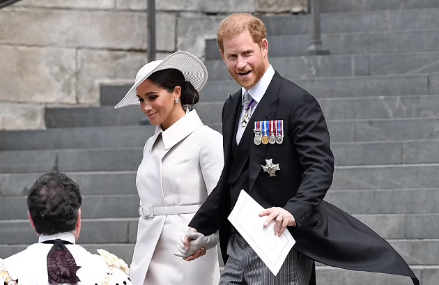 The Sussexes were at thanksgiving service at St. Paul’s Cathedral where they were greeted by the Dean of St. Paul’s at the great west door.