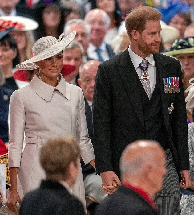 Harry and Meghan stayed in Windsor with their children Archie and Lilibet, alongside Her Majesty who was watching the Platinum Party on television.