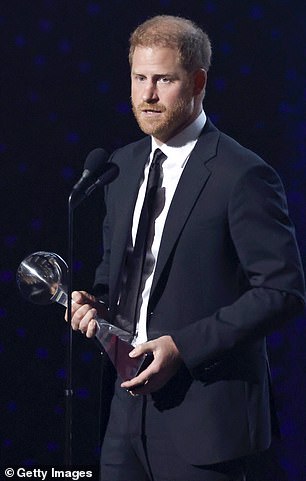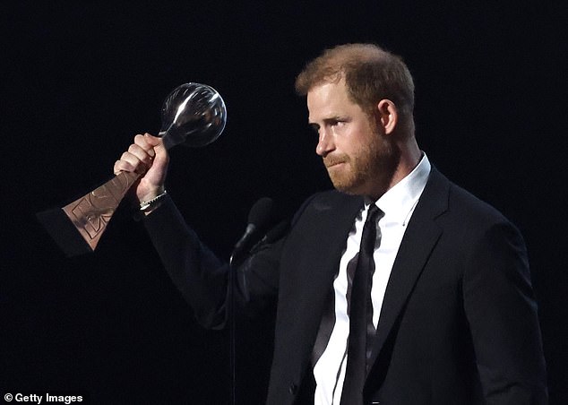 The controversial award was given to Harry last night where his wife stood close by his side, showing him support and love throughout his speech.