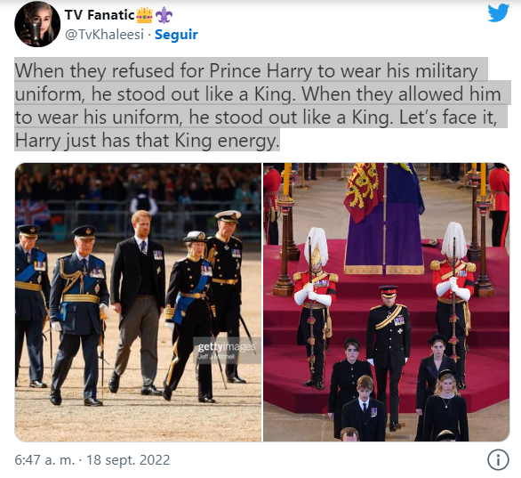 “When they refused for Prince Harry to wear his military uniform, he stood out like a King. When they allowed him to wear his uniform, he stood out like a King. Let’s face it, Harry just has that King energy,” the fan wrote.