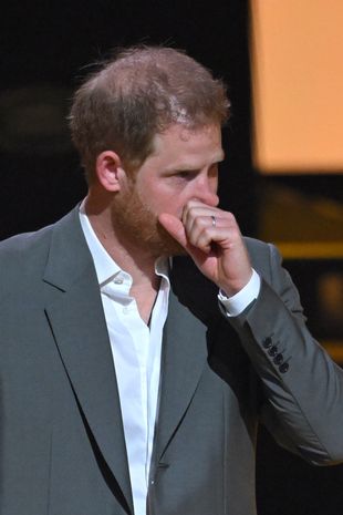 Prince Harry and Meghan Markle attended the Games opening ceremony in The Netherlands, with the duke looking smart in his grey suit matched with an open collar shirt.