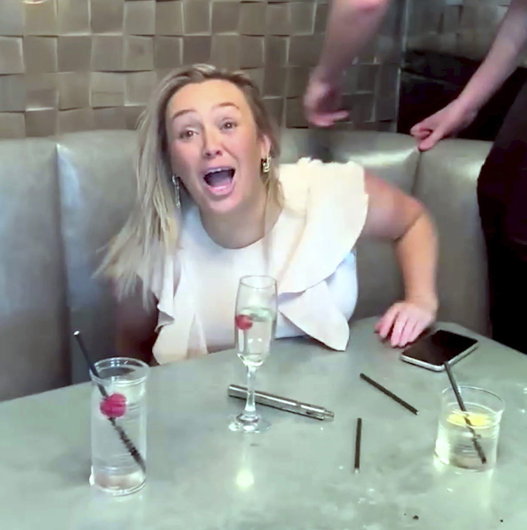 It’s safe to say that it was a true bottom’s up moment for the enthusiastic party-goer who looked like she had one drink too many during her friend’s boozy birthday affair.