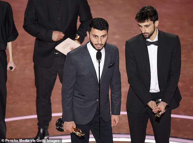 Basel Adra gripped the Oscar for the movie Best Documentary for No Other Land while another member from the crowd could be heard yelling at the top of his lungs, ‘Get rid of Hamas!’