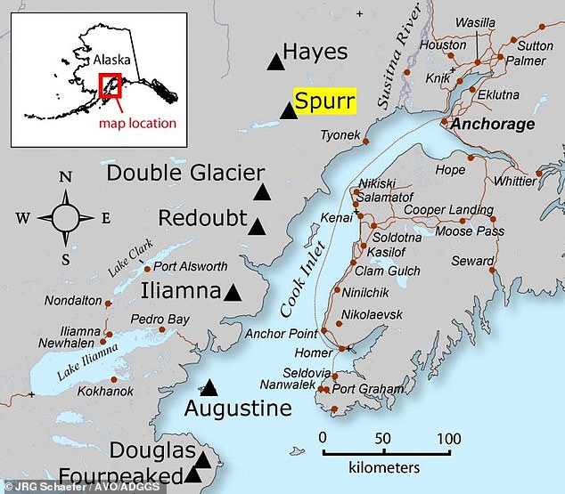 Mouth Spurr is a stratovolcano that sits 81 miles away from Anchorage. It’s now started to release elevated levels of gas from the summit and then a side vent that last erupted in 1992.