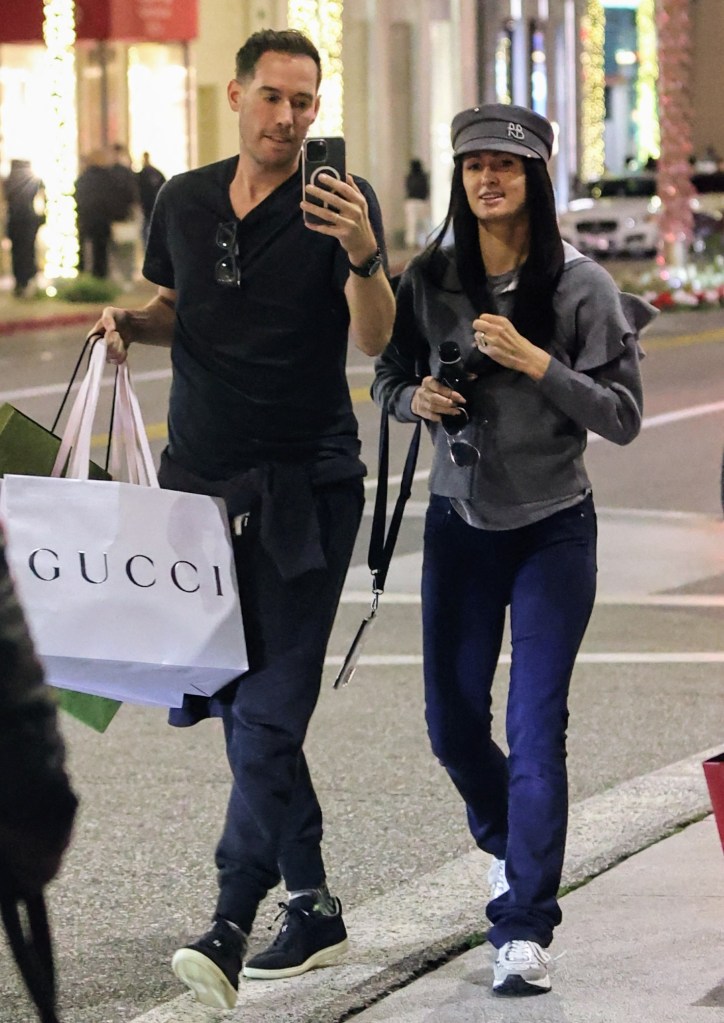 The 42-year-old heiress to the Hilton hotels was seen holding a Gucci shopping bag alongside her husband Carter Reum.
