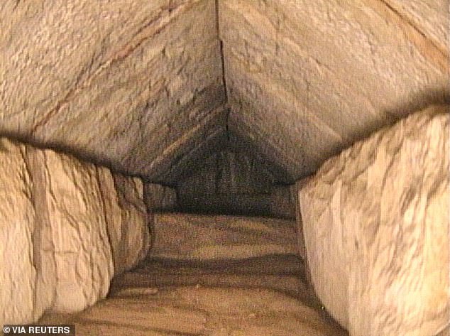 Scientists got a first glimpse into the mysterious 30-foot-long corridor ‘likely created to redistribute the weight of the monument that’s more than 4500 years old.