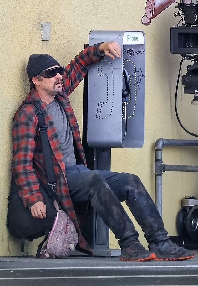 In the photos shared by DailyMail.com, the 49-year-old actor is seen talking over the pay phone with a worrying look on his face. The man looks rugged in worn-out clothes and appears to be camouflaging his face with black shades and a black hat.