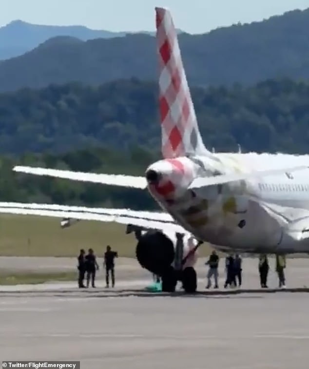 He managed to break free from their grip and started to run towards the tarmac and threw himself into one of the plane’s turbofans on the Volotea Airbus A319 flight V73511 from Milan to Asturias.