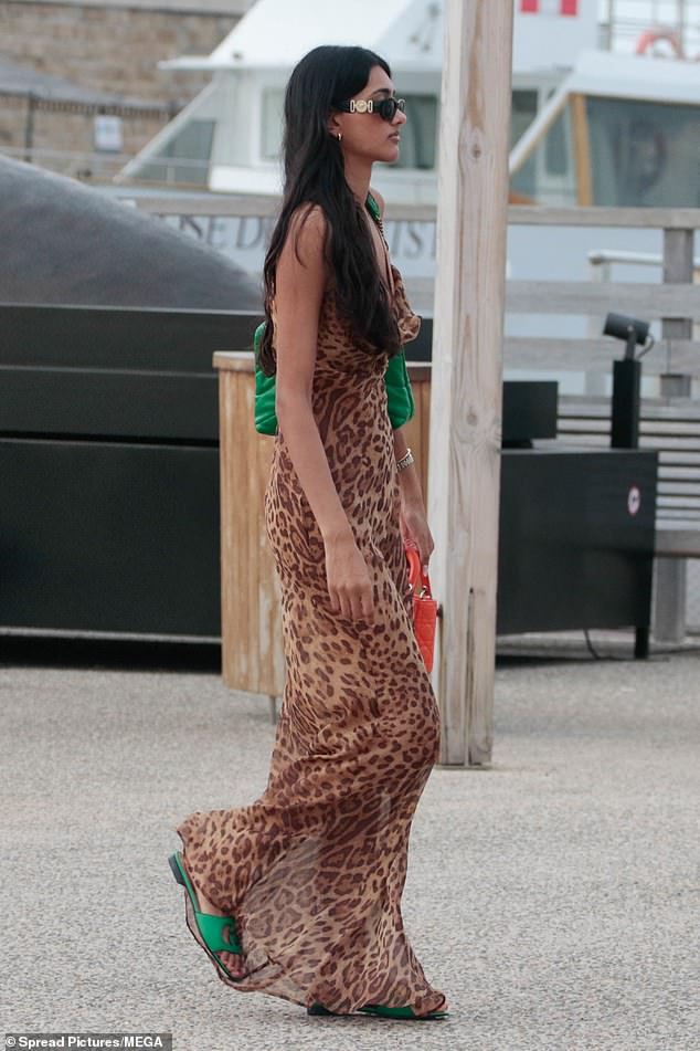 Gill is a 28-year-old fresh-face model from the UK and is making it big around the world. Her tiny figure was on display in a leopard print dress attire that had a pop of color with accessories like green shoes and a green bag.