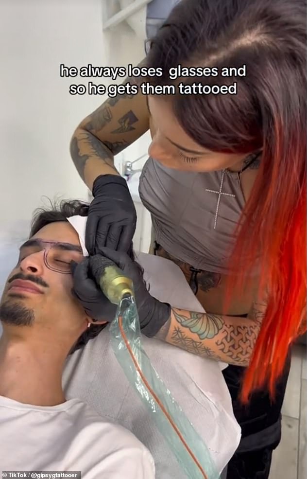 A tattoo artist was seen causing a stir online after inking a pair of glasses across a man’s face.