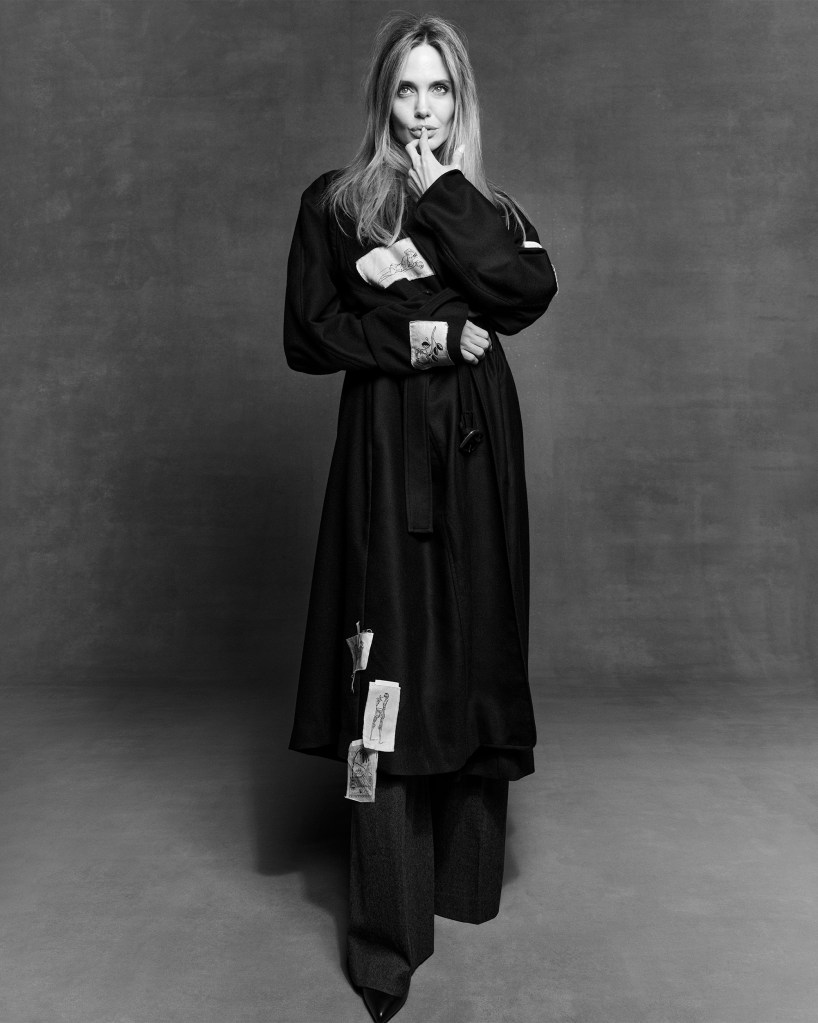 The actress who was in the latest issue of CR Fashion Book modeled several designs from her Atelier Jolie line, alongside striking disco curls.