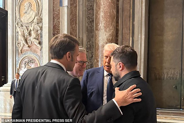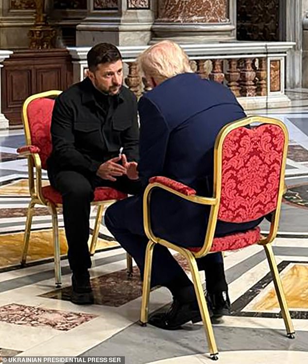 Donald Trump and Volodymyr Zelensky were seen meeting briefly at Pope Francis’ funeral.