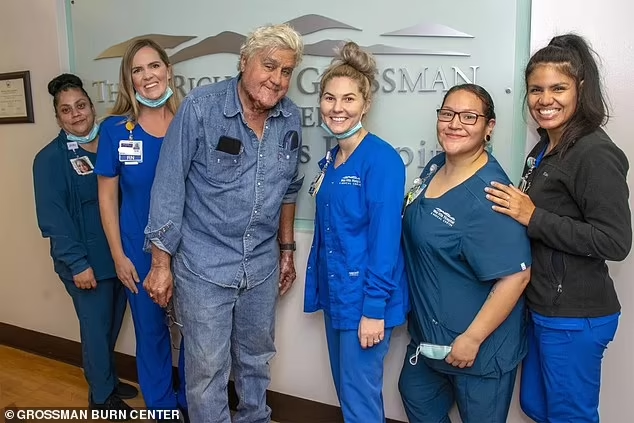 On Monday, the Grossman Burn Center announced that the 72-year-old TV host has been discharged after staying at the facility for ten days, sharing a picture of Leno smiling with staff.