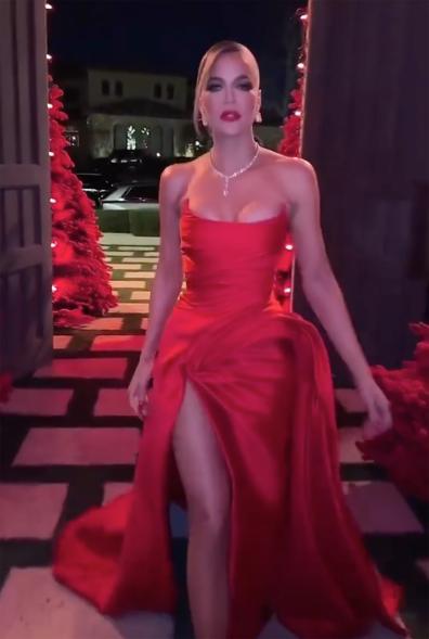 Khloe Kardashian looked beyond stunning in a red gown that was strapless yet so elegant. She certainly couldn’t control her excitement as she shared with fans how she had actually come in early because that’s just how excited she was to see everything in place and to begin her celebrations a little earlier than the rest.