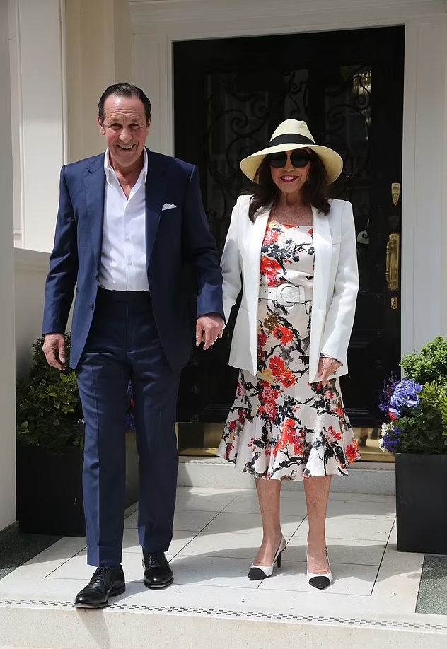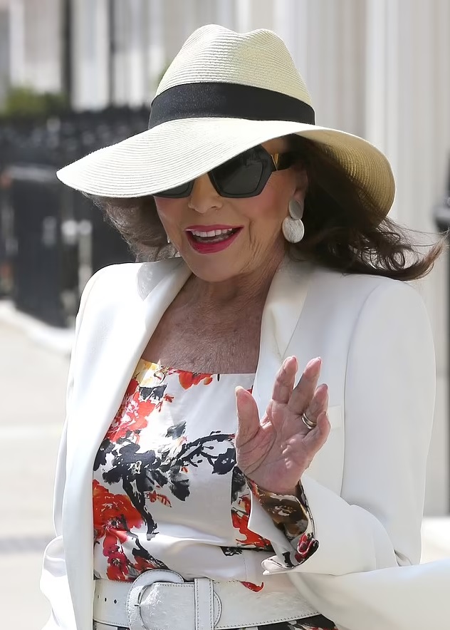Joan Collins showed off her age-defying looks as she stepped out of her home with her husband to celebrate her 90th birthday.